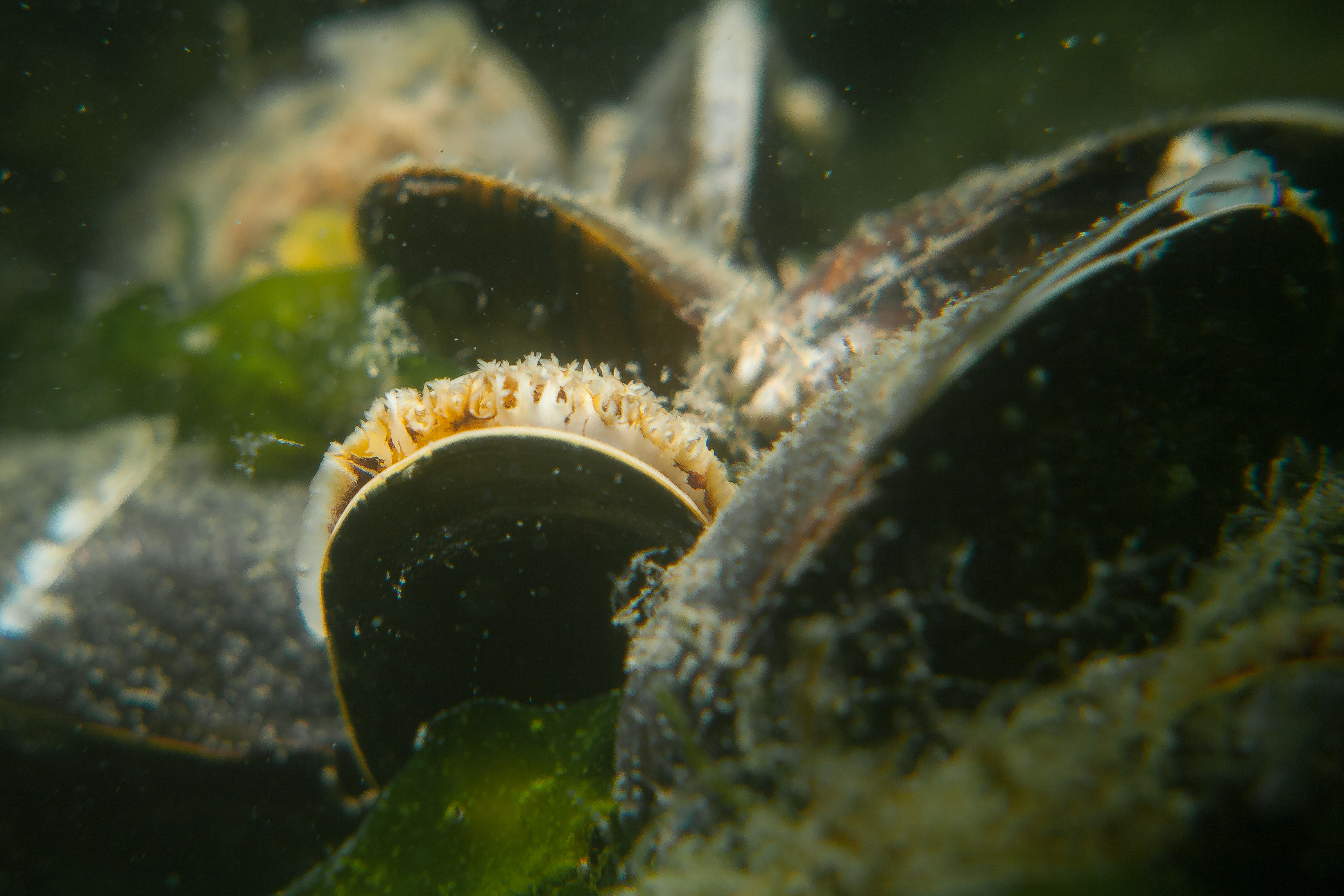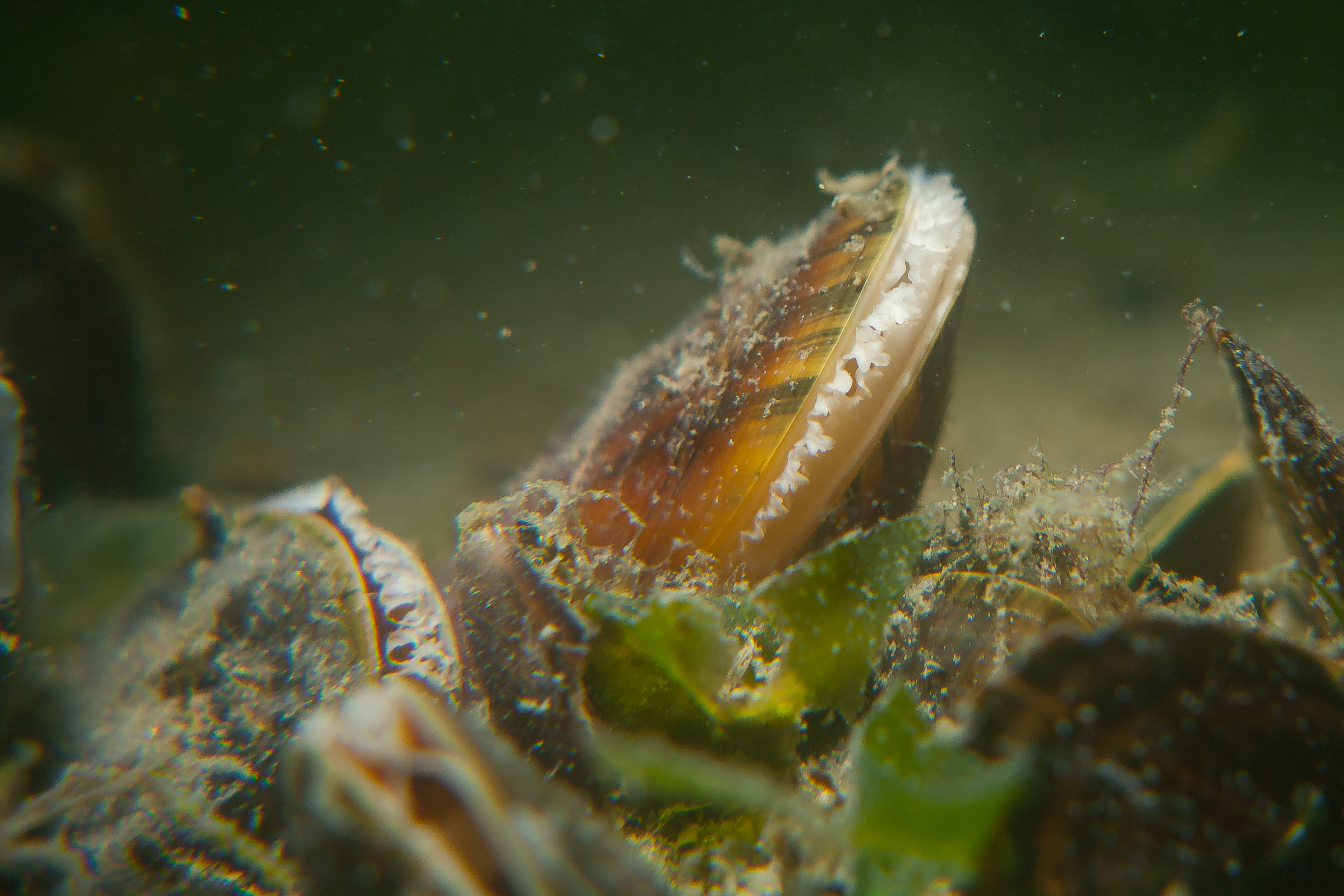 Deze luie en diepe trap gaat zelfs bij laag water nog tot aan het water. Hier vind je nog een houvast die het aantrekken van de vinnen makkelijk maakt. Vanaf dit punt is het nog maar een meter naar een dieper deel. Je kan hier goed rechtsaf duiken richting het strandje. Onder water kom je al snel flinke begroeide stukken tegen met Japanse oesters.