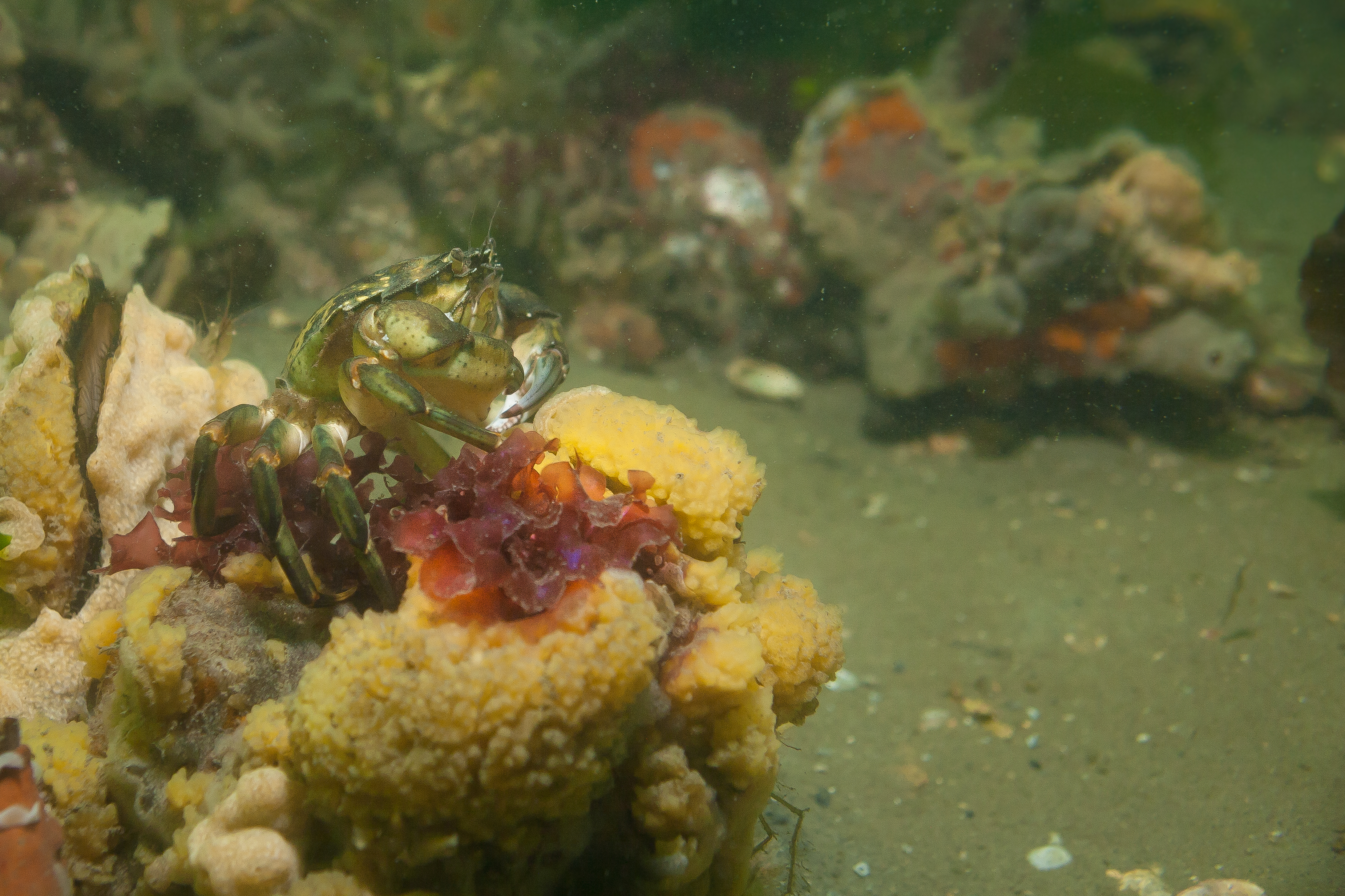 Als je linksaf duikt vanaf het strandje dan vind je na enige tijd een groot rif met veel bekend leven zoals je die vind in de Oosterschelde.